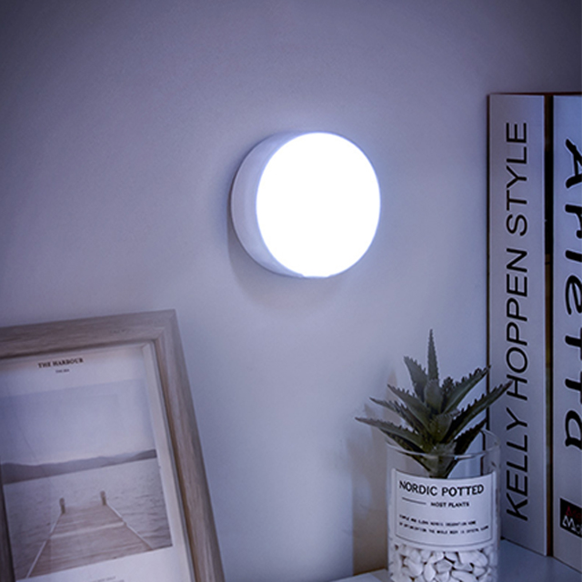 Rechargeable infrared light-controlled human body induction cabinet lamp two-color round wardrobe bedside induction lamp