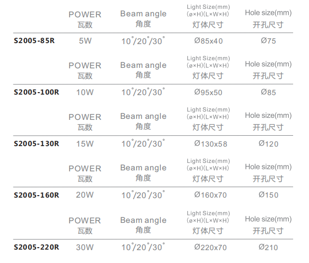 CCT: 2700K 3500K 3000K 4000K 5000K