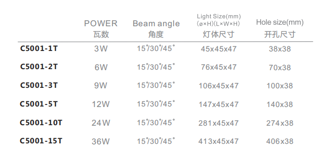 Beam Angle: 15/30/45degree
